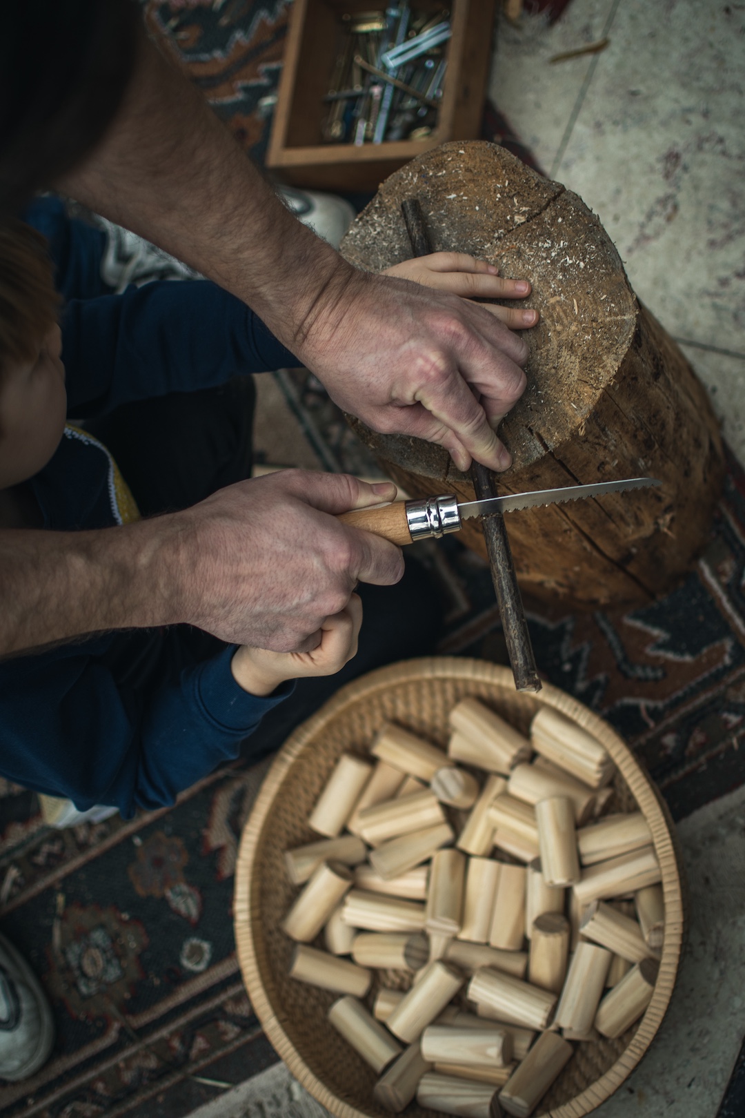 in de initiatieworkshop houtsnijden vertrekken we van een stuk vers hout of een ‘blank’ (voorgesneden basisstuk). we focussen vooral op het hanteren van de twee basismessen voor het houtsnijden: het duimmes en het lepelmes.